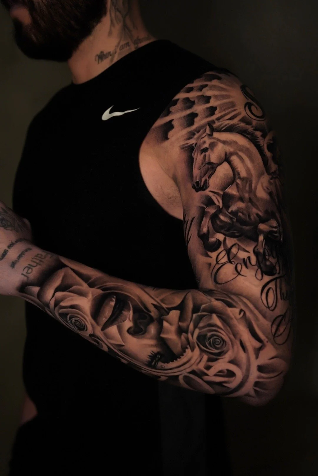 Ink built to flow and flex with you. Full-arm, leg, or back pieces that tell a story in layers of shadow, movement, and raw black & grey artistry.