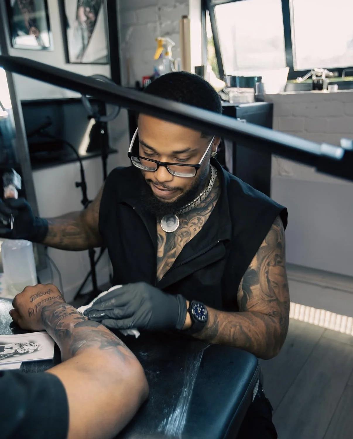“I’ve been getting tattooed by Devon for over a year now, starting with smaller pieces on my hands, and most recently, a full back piece. From day one, I couldn’t have asked for a better artist. Devon is incredibly talented, detail oriented, and patient he approaches every piece with precision and a deep commitment to making it perfect.”